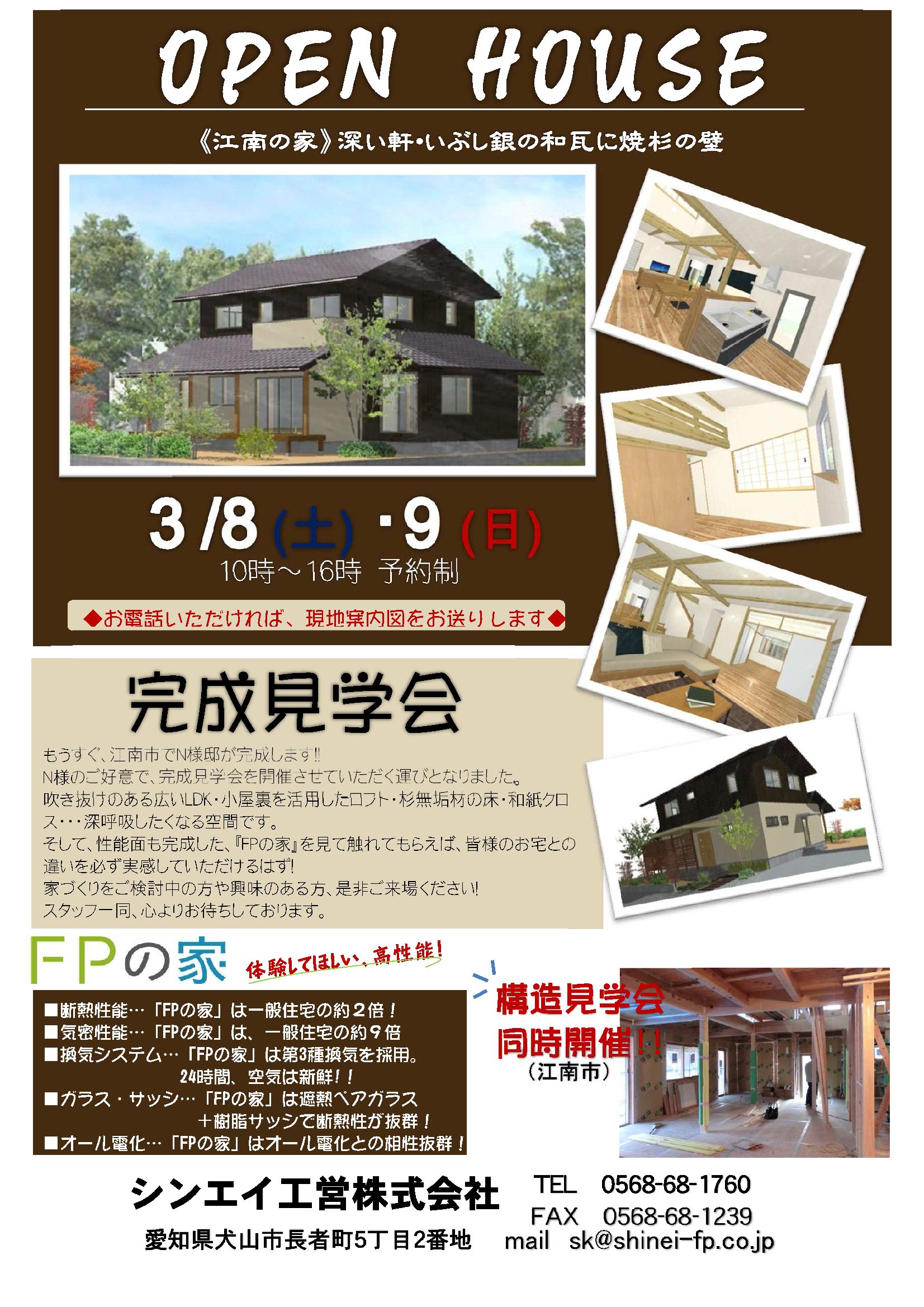 3月8日(土)・9日(日)の二日間、間もなく完成しますN様邸の