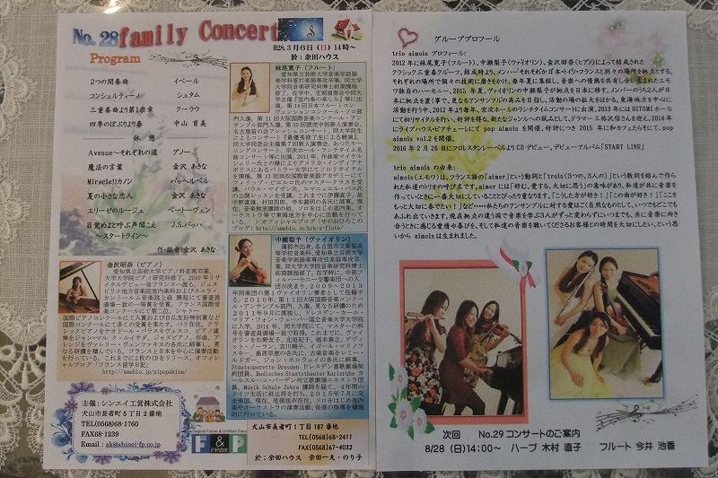 28回ふぁみりーコンサートのプログラムできました。