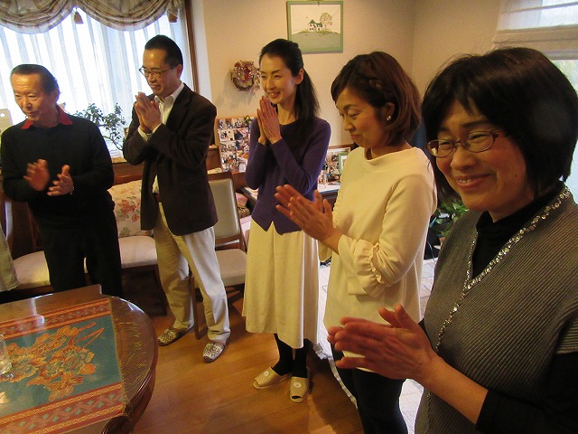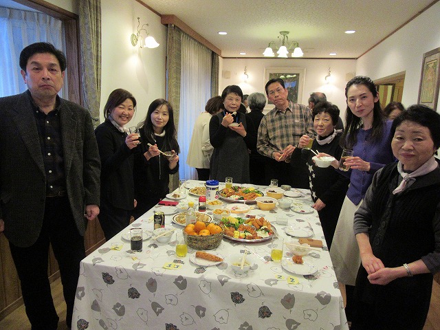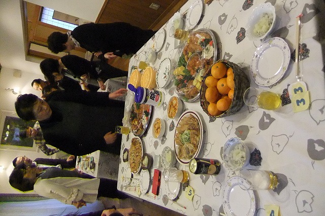 演奏会終了後は拙宅で打上げ 手際よく設営し、感想をいただきながら懇親会