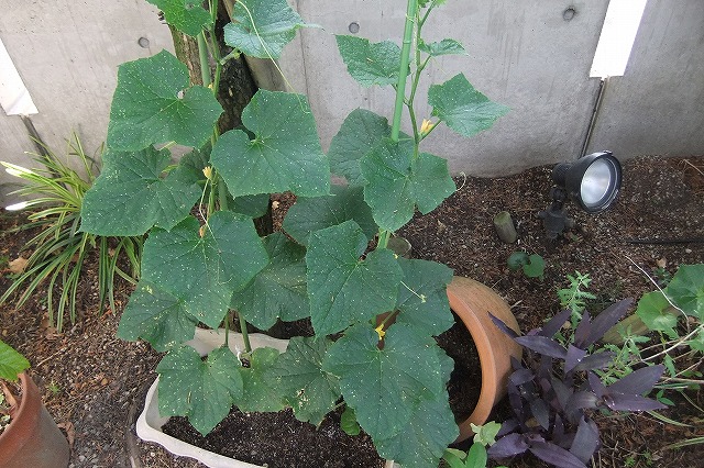 5月の連休中に植えた苗は トマト・キュウリ・ゴーヤ 成長も早く花も咲き収穫が楽しみになってきました