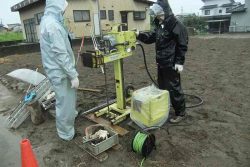 雨の中、地盤調査です 敷地の現状は畑、深さ1mぐらいは粘性土でその下1mぐらいは砂質層 それ以深は砂礫層で砂利が出てくるまで思ったより深い位置でした 地盤を正しく知ることで地震の被害を最小限に抑えられます。 蔑ろにできない大切な調査です。